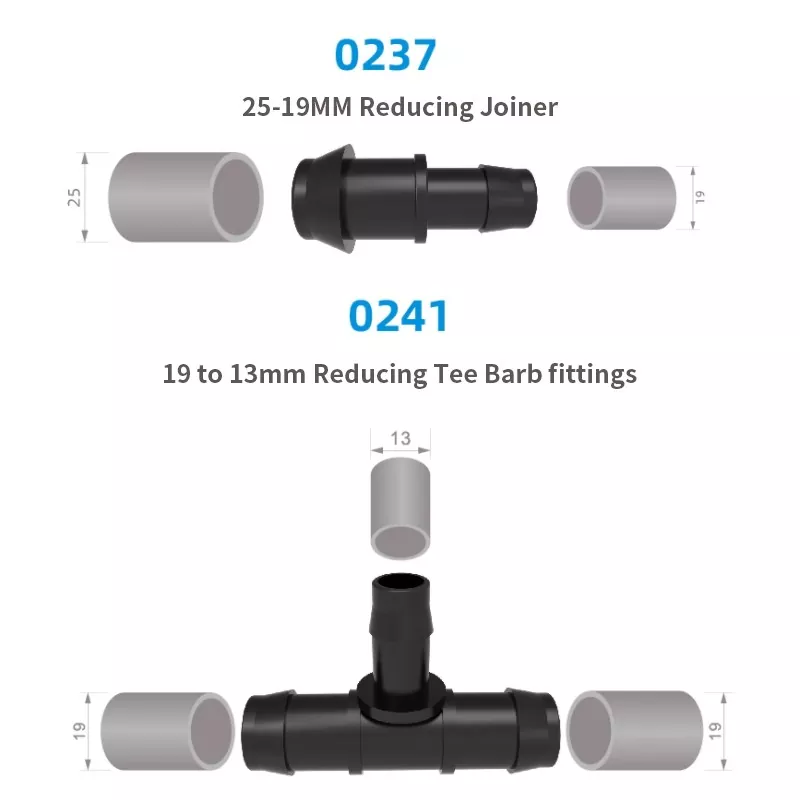 Serie 13mm/19mm/25mm kunstvandingssystemforbindelser og fittings