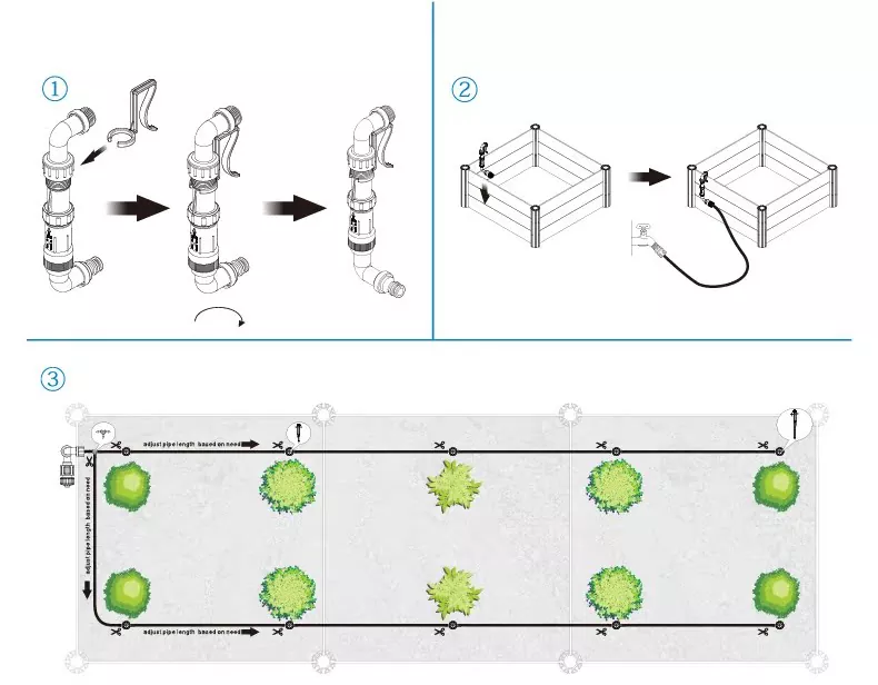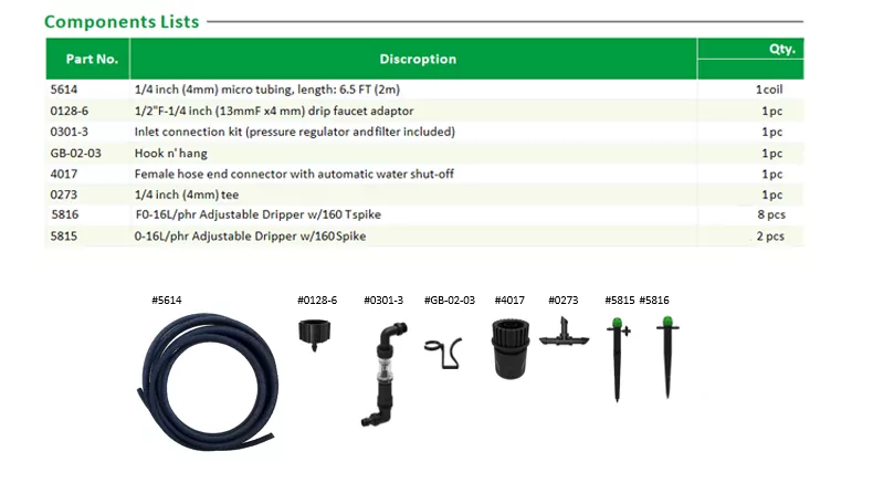 Hele tilbehørssættet er godt afstemt, 4 mm PVC-røret passer perfekt til tre-vejs fittings og adapter. Når den er indsat, er den fastgjort på plads uden behov for PTFE-tape eller yderligere boring. Den 2 meter lange rørledningslængde er den helt rigtige til de fleste plantebede til husholdninger. Uanset om det er enkeltrækket plantning eller flerrækket zonebeplantning, med en tre-vejs manifold kan drypperne installeres, hvor du vil, hele vandingssystemet kan sættes op på en halv time.