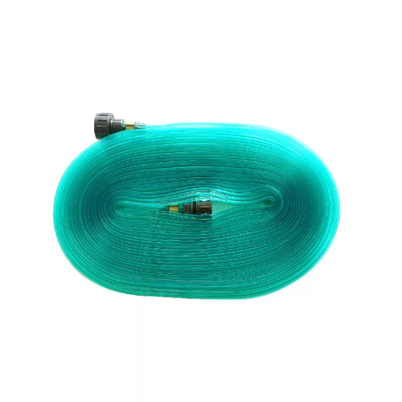 Soaker-slangen er en ujævn, ujævn græsplæne, blomsterbede og buske i haven. Udsivningsslange Beskrivelse: Slangen er lavet af transparent grønt PVC-materiale med små perforeringer langs overfladen. Når de er tilsluttet en vandkilde, udsender disse perforeringer fine vandspray til vanding af græsplæner eller landbrugsarealer. Nøglefunktioner: Trykafhængig sprøjteafstand: Højere vandtryk resulterer i et længere sprøjteområde. Længde påvirkning: Den samlede slangelængde påvirker også sprøjteafstanden, hvilket gør det vigtigt at vælge en passende størrelse for optimal dækning.