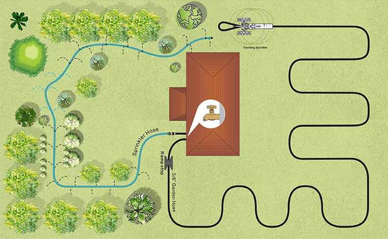 Sprøjteafstanden på Garden Soaker-slangen er direkte relateret til vandtrykket. Hvis du vil have vandet til at sprøjte yderligere, for eksempel ved vanding af et stort græsareal, skal du blot justere vandtrykket lidt højere. Hvis du vander små blomsterbede i nærheden af vejkanten, kan sænkning af vandtrykket også dække dem præcist, så der er ingen grund til at bekymre dig om vandspild.