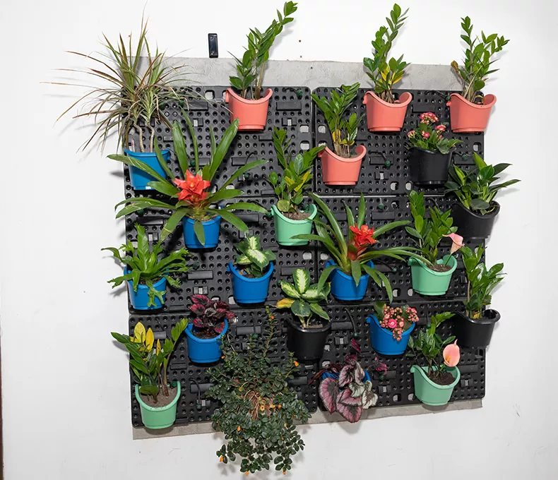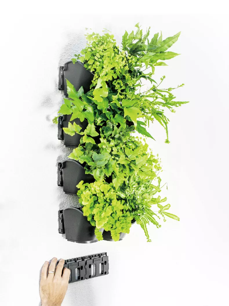 Denne indendørs selvvandende plantekrukke er sammensat med både Watex Vertical Wall Garden Bracket og Watex Metal Mobile Green Wall.