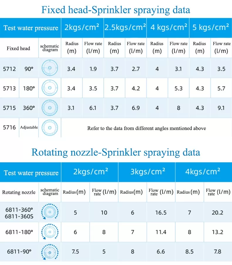 Vores produkter dækker to typer sprinklere: roterende og faste. Både roterende og faste sprinklere tilbyder vinkelmuligheder såsom 90°, 180° og 360°, parret med tilpassede vinkel indendørs sprinklere, de kan opfylde behovene i forskellige vandingsscenarier fra faste områder til fleksible justeringer, fra små hjørneområder til store hele områder, uden at det er nødvendigt at købe ekstra udstyr.