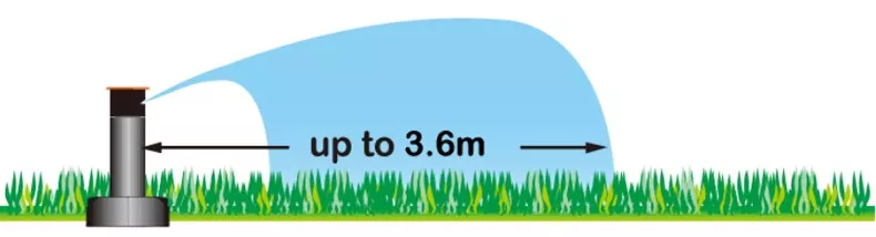 Justerbare og faste vinkelsprinklerhoveder med en maksimal sprøjterækkevidde på 3,6 meter.