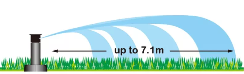 Roterende sprinklerhoveder med en maksimal sprøjterækkevidde på 7,1 meter.