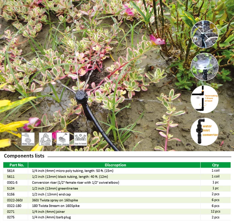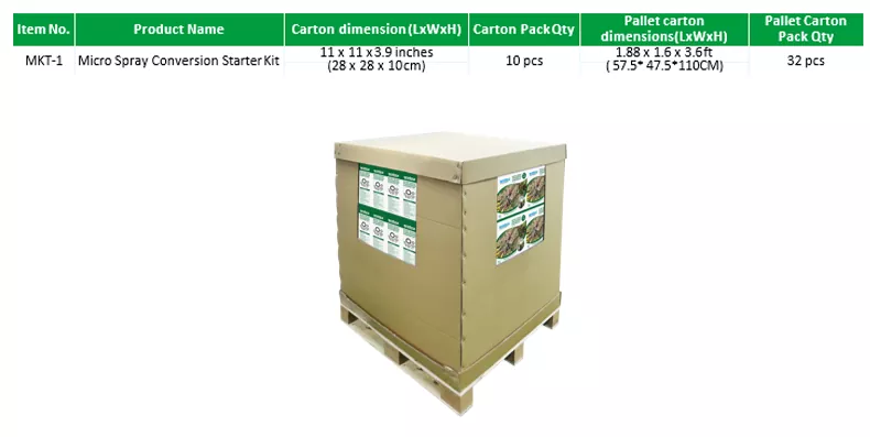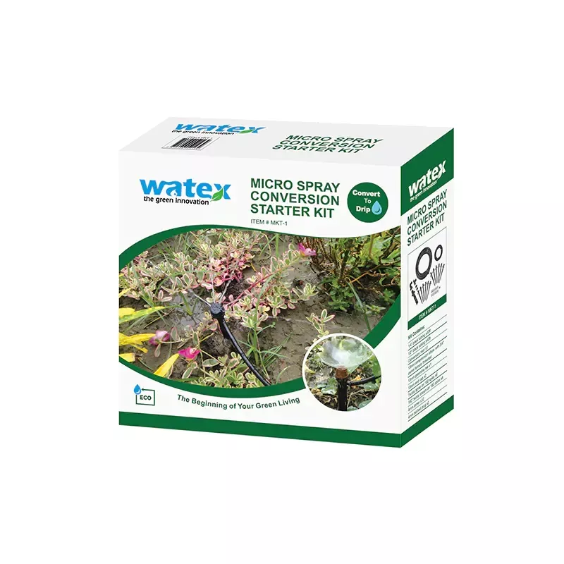 Micro Spray Conversion Starter Kit MKT-01 1、Let at konvertere pop-up sprinkler til en effektiv mikro vandingsanlæg Indeholder alle de væsentlige elementer, du har brug for til at konvertere pop- op drys vanding til mikrosprayvandingssystem Mikrosprayvandingssystem er mere effektivt og vandingsbesparende metode til at vande din have